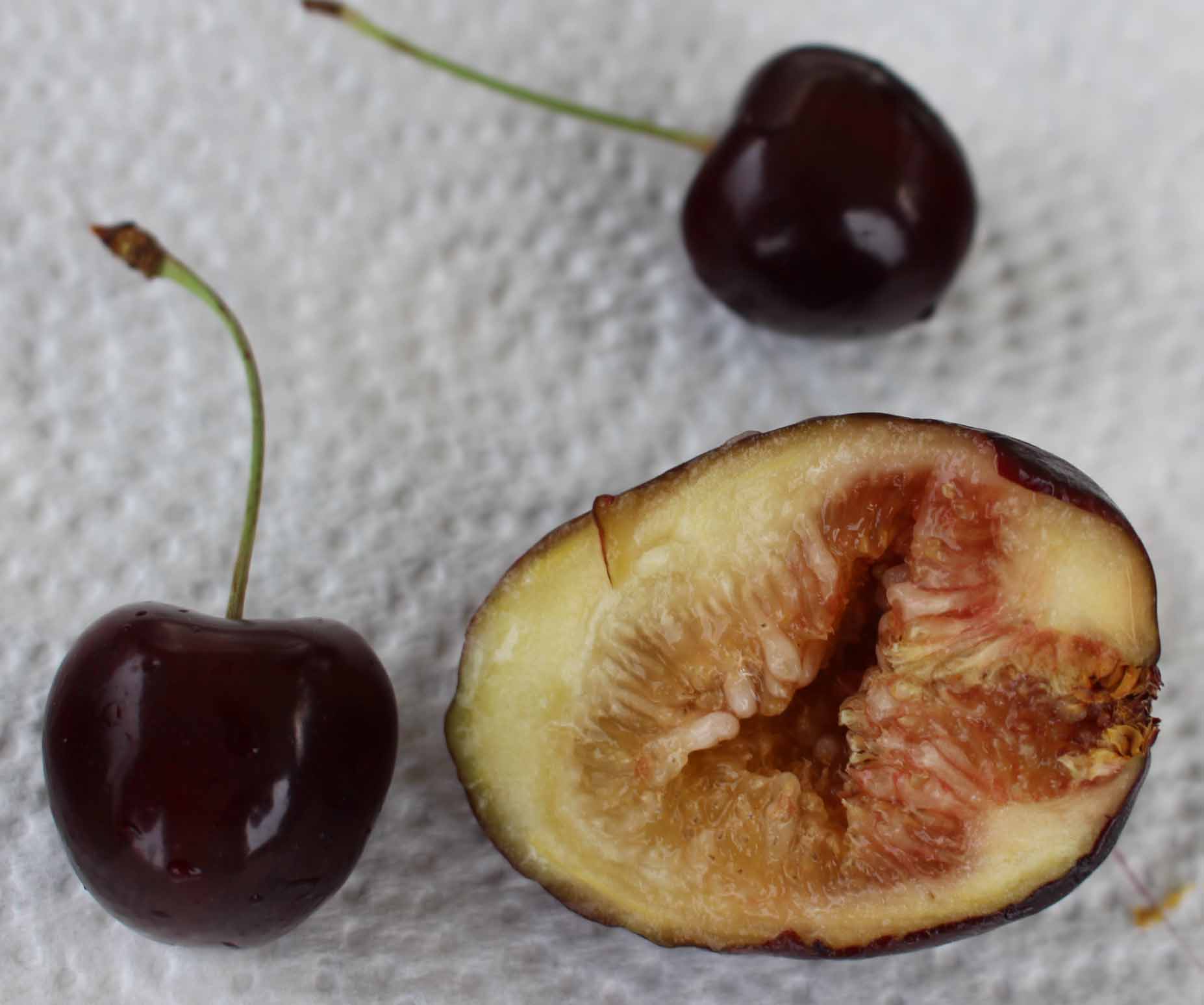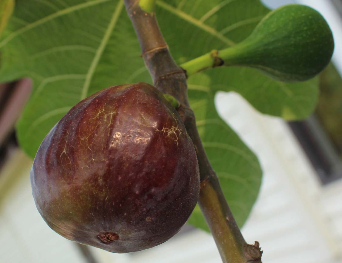 The figs start out with bright red ribs and eventually turn black. Very sweet