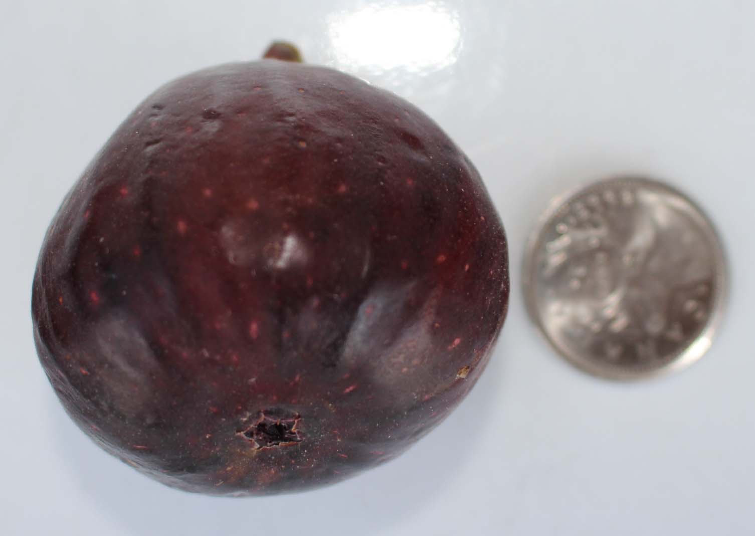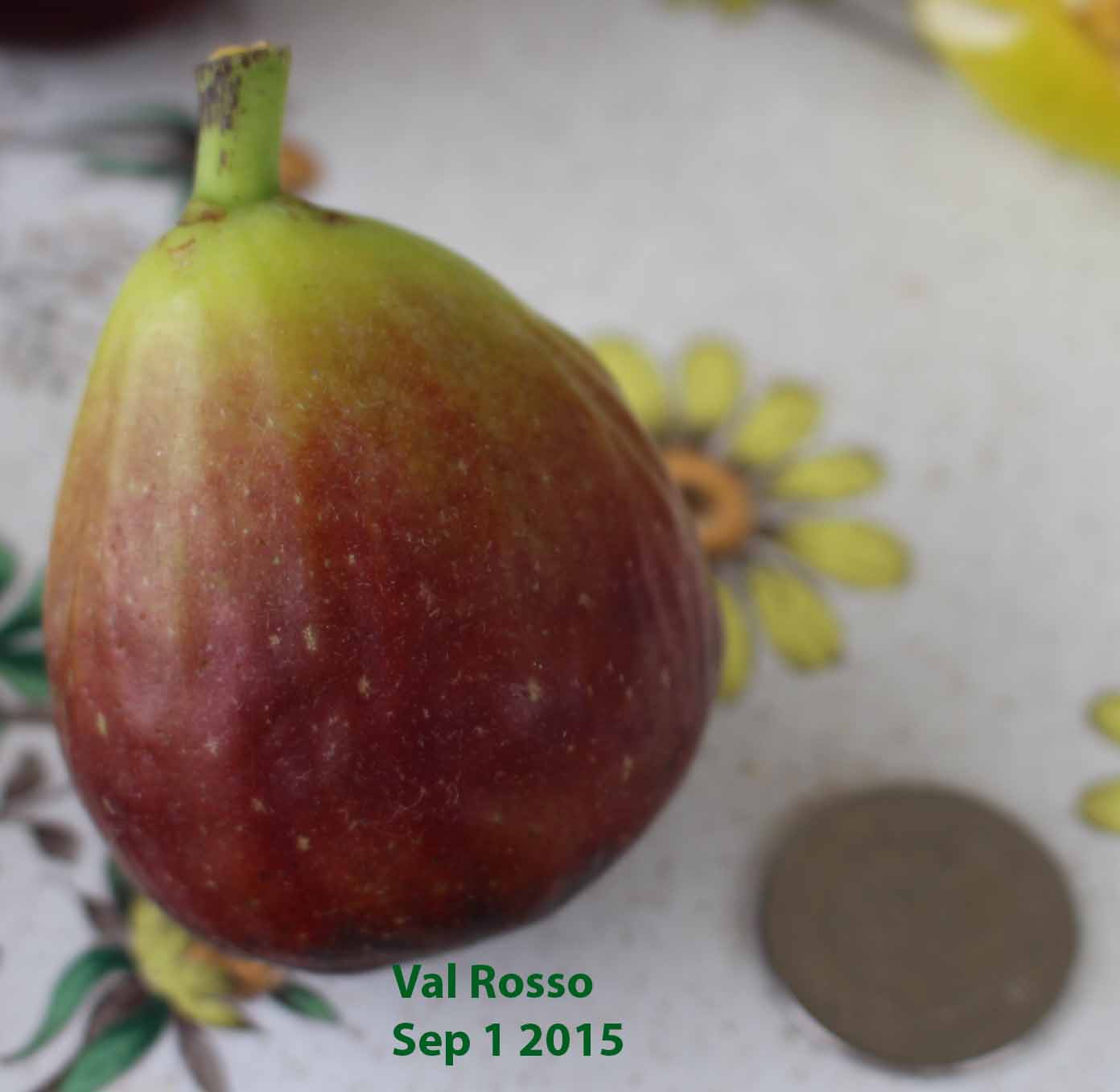 Medium size fig, Dark red to violet figs with golden flesh. Turbinate to oblique, mostly without neck.